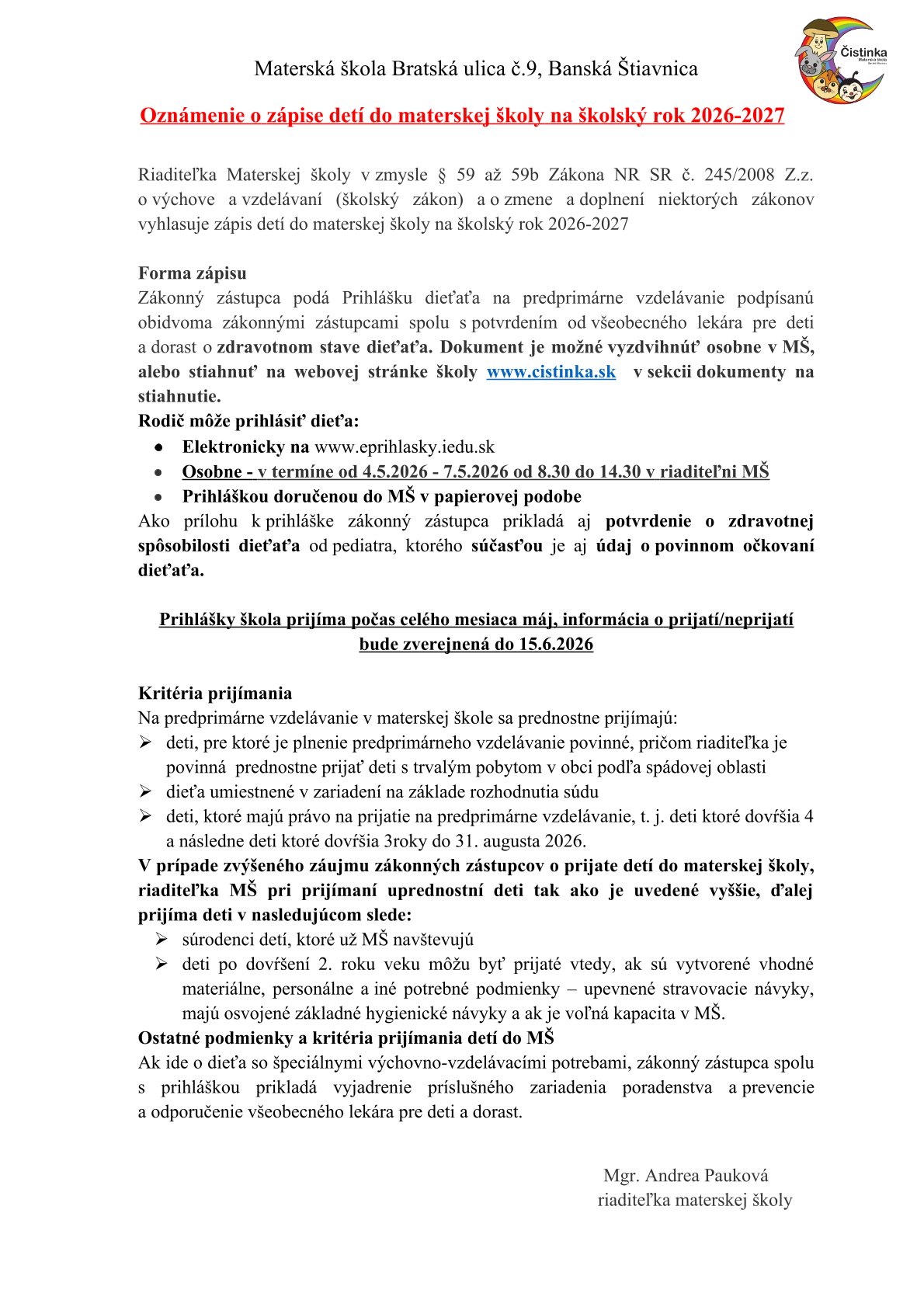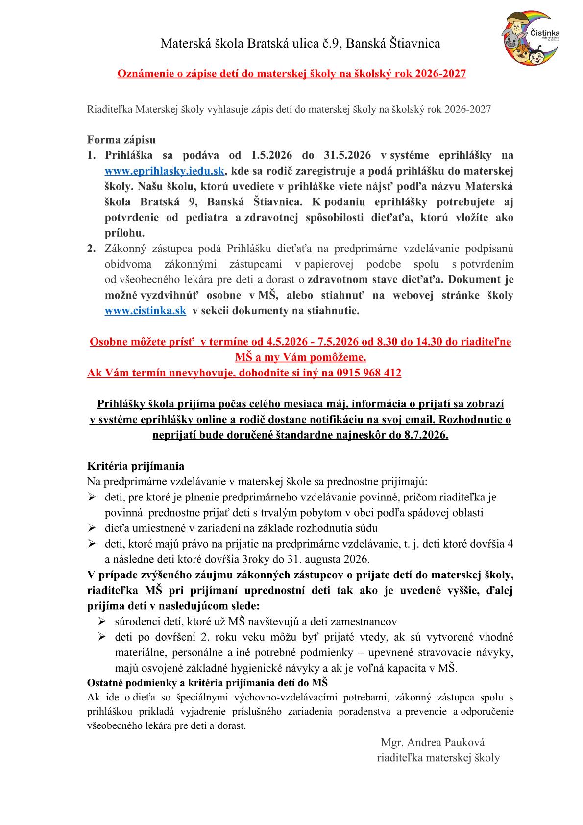 telefón: 0911 442 779 riaditelkams@cistinka.sk